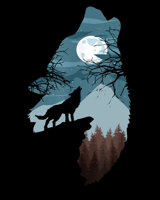 Forest with Full-Moon and Cliff Of Silhouette Howling Wolf Sweatshirt